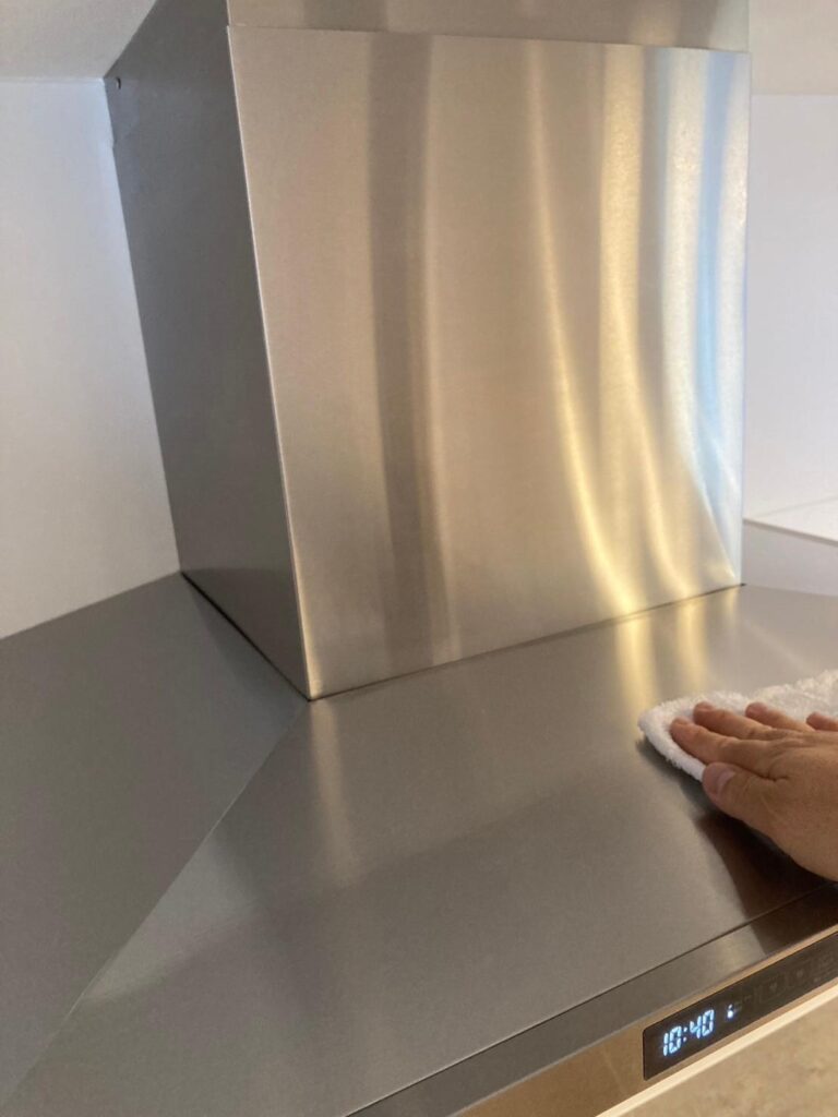ステンレス製のレンジフードに手垢や拭きムラの汚れが…
