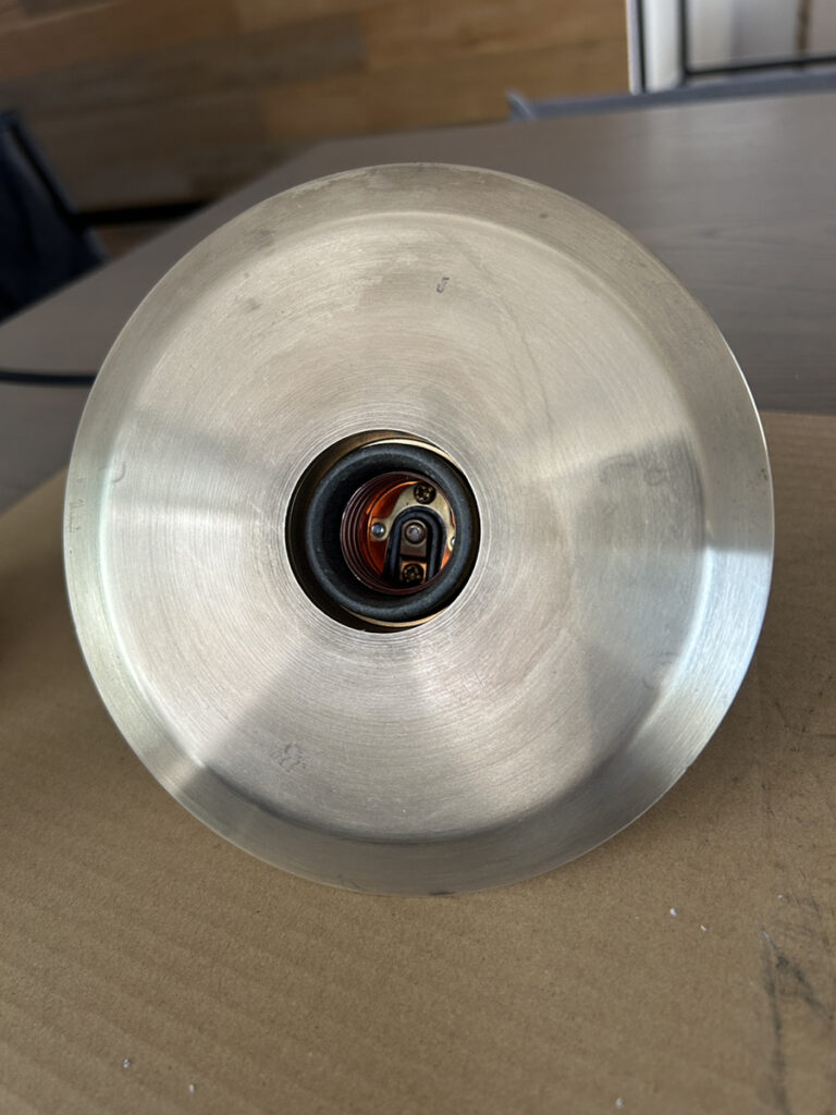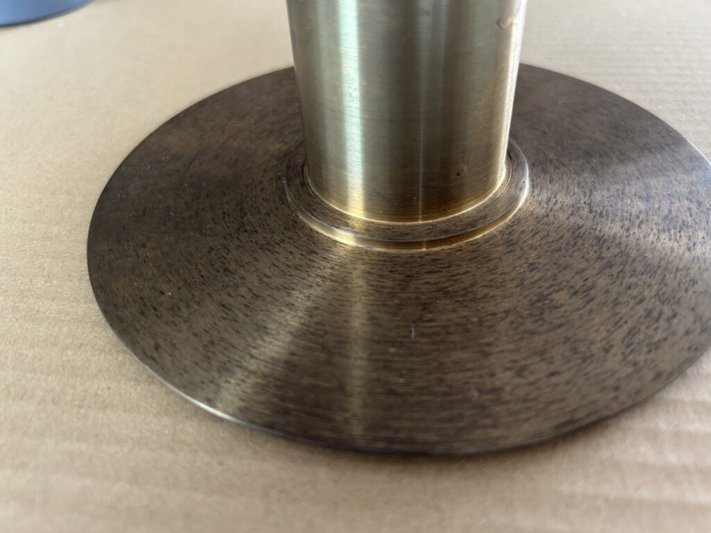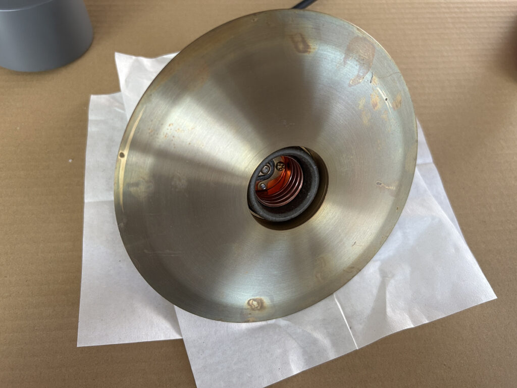 今回は、当社の事務所で使っている 真鍮製の照明(NEW LIGHT POTTERY/Bullet flat shade 150) をきれいにしてみたので、その方法を紹介します。