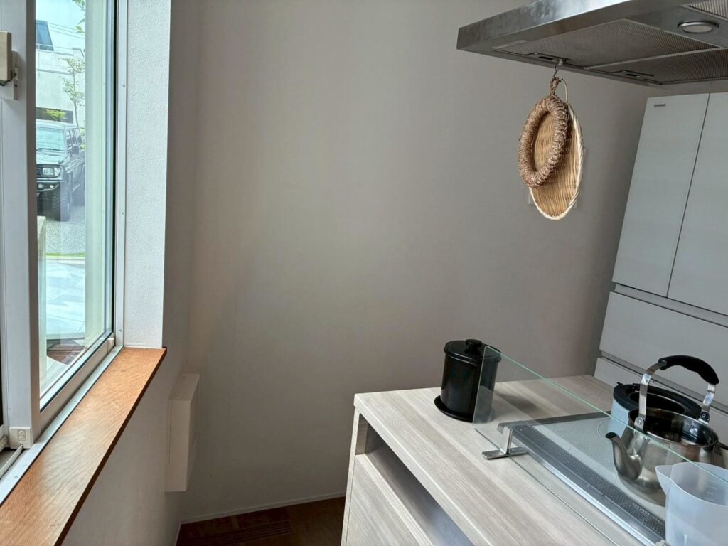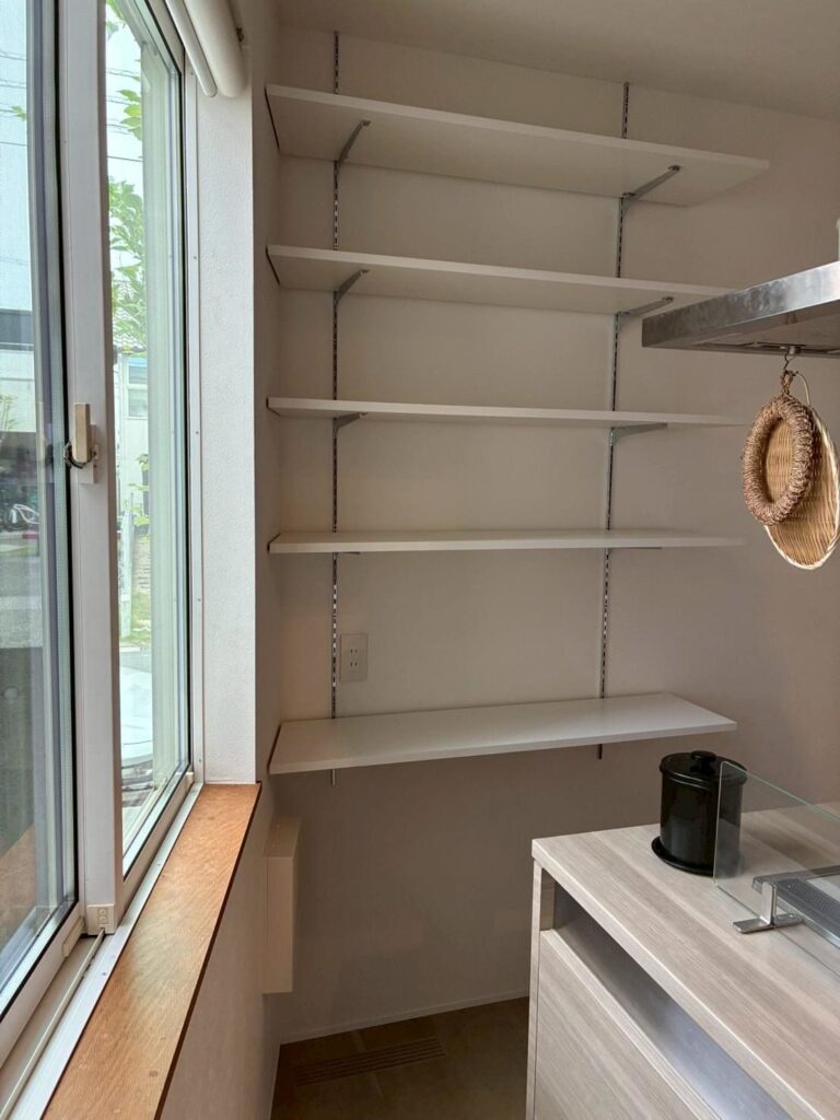 今回はキッチンのコンロ側の通路に、可動棚を設置した事例です。