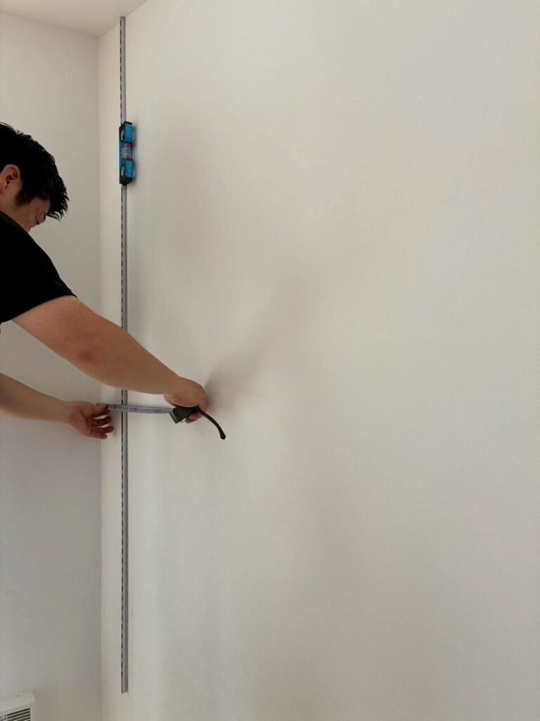 まず、下地の位置を確認しながら棚柱を取り付けます。